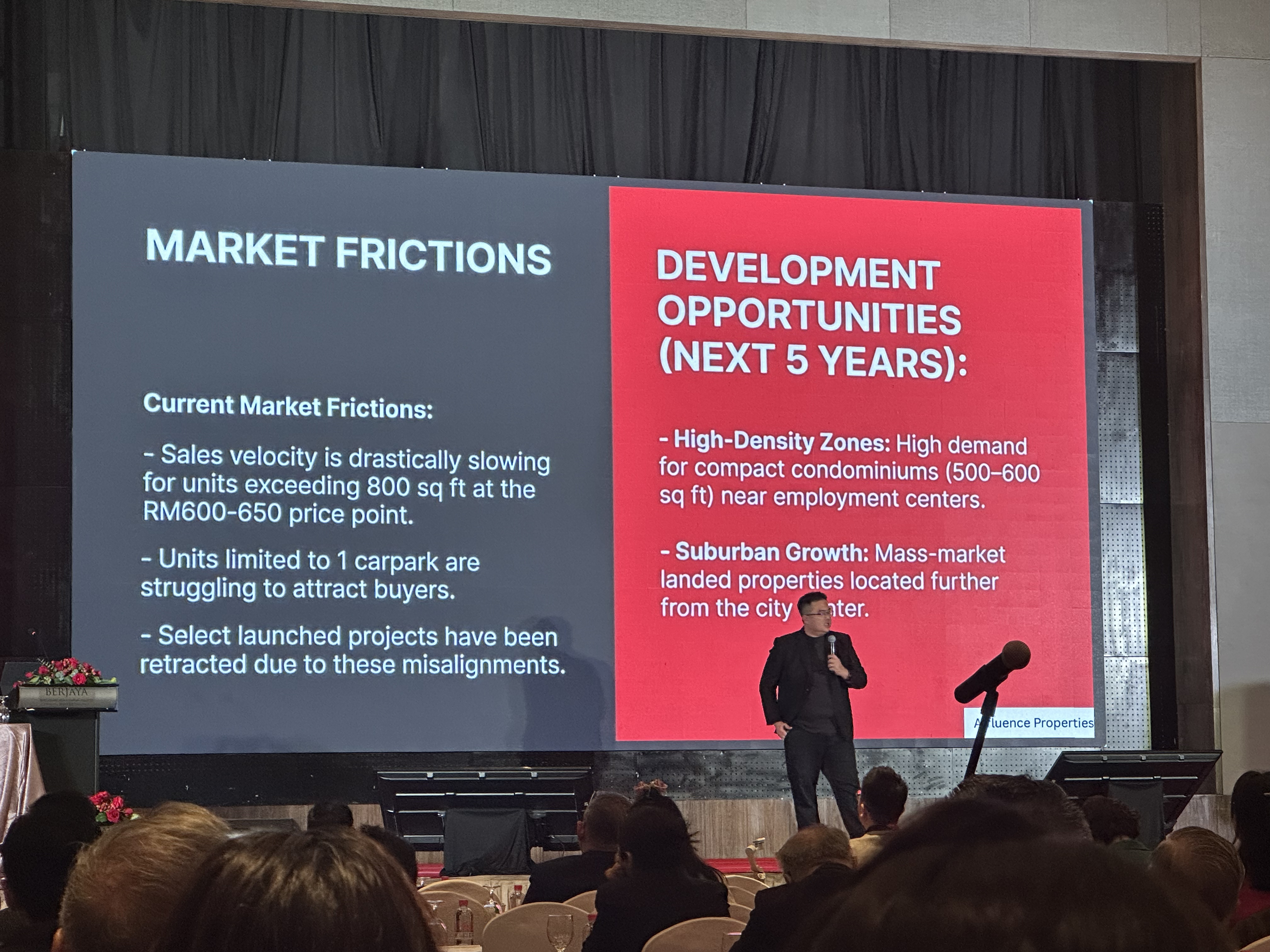 From a development standpoint, the slides highlighted changing dynamics in the residential segment. Urban high-rise projects have been seeing renewed attention in recent years, while suburban landed properties continue to attract interest from buyers seeking lifestyle value and affordability. This combination reflects a market responding to different needs across demographic groups, rather than moving in a single direction.